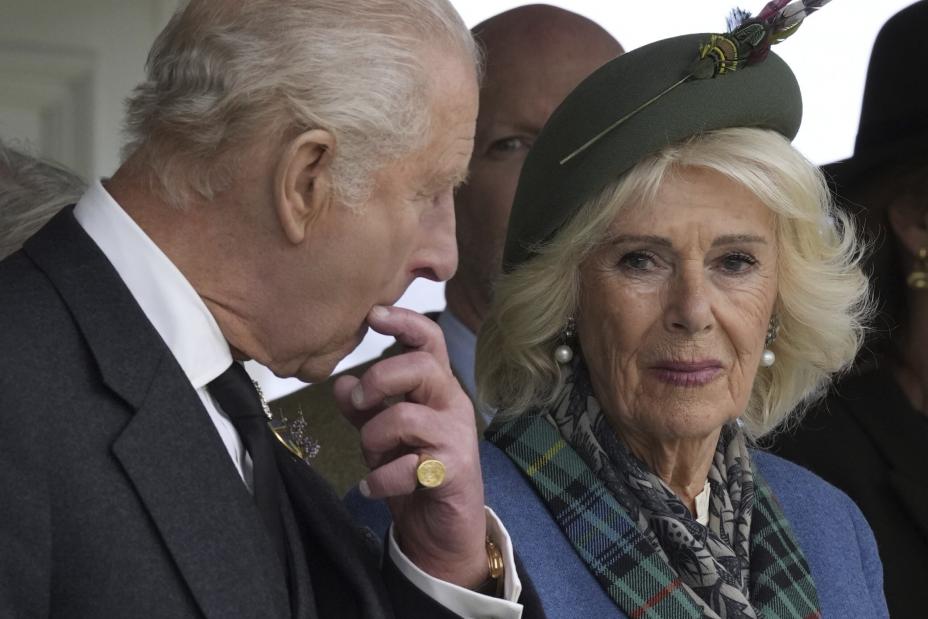 Dronning Camilla står over begravelsen til hertuginnen av Kent for å pleie sin bihulebetennelse. Håpet er å delta for fullt under statsbesøket til det amerikanske presidentparet. Her er Camilla avbildet sammen med ektemannen, kong Charles. Foto: Aaron Chown/PA via AP / NTB