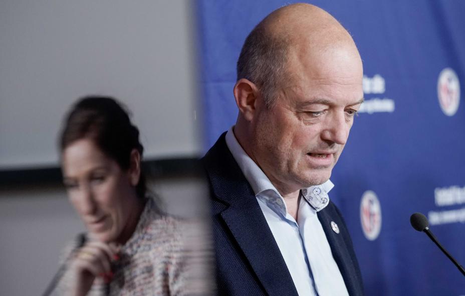 Norges Fotballforbund med generalsekretær Karl-Petter Løken og fotballpresident Lise Klaveness møtte pressen mandag.