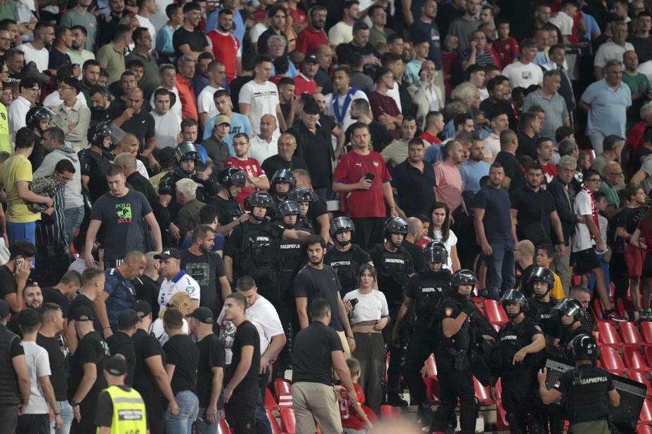 Kampen mellom Serbia og Albania flyttes. Foto: Darko Vojinovic / AP / NTB