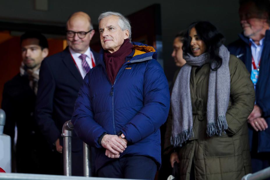 Lubna Jaffery og statsminister Jonas Gahr Støre (Ap) var på plass på Ullevaal da Norge møtte Spania for to år siden.