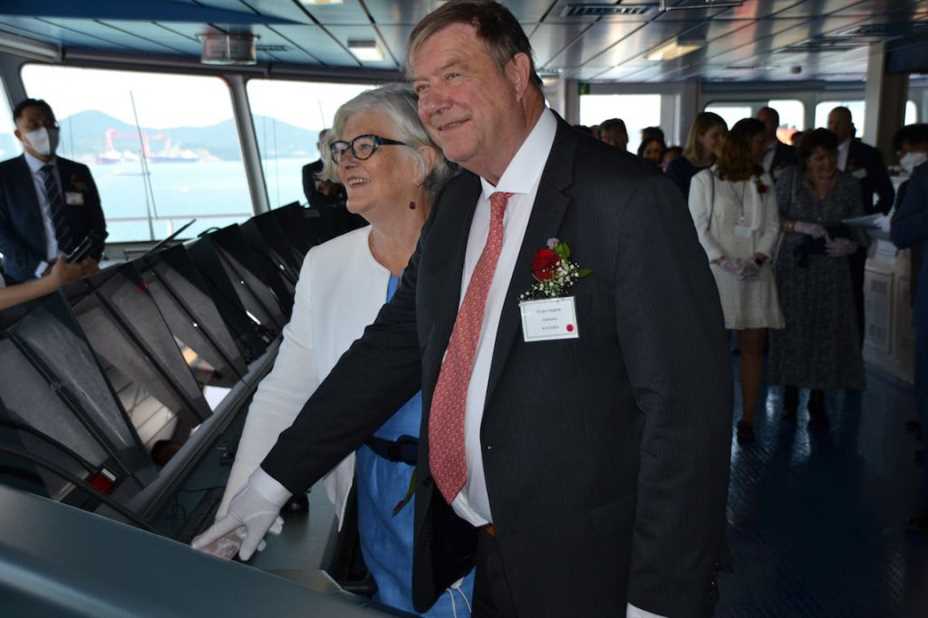 Trygve Seglem på broen av «Santander Knutsen» sammen med sin kone, Tove. FOTO: Knutsen OAS Shipping AS