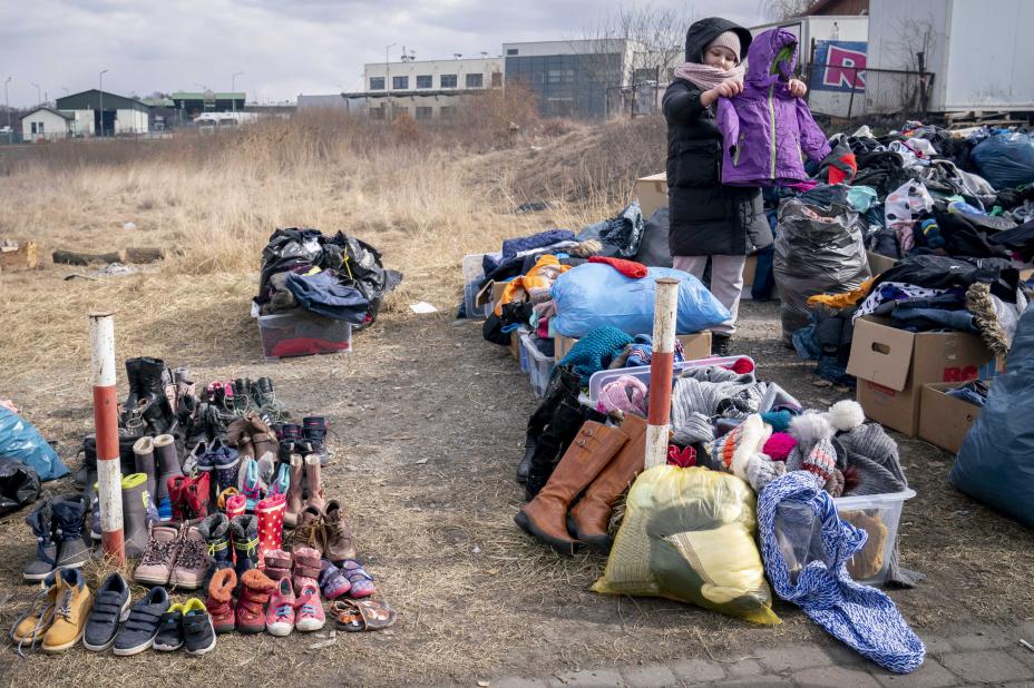 Ved grenseovergangen i Medyka kommer flyktninger fra Ukraina. Mange i Norge er engasjert i innsamling for befolkningen i Ukraina, som er rammet av krigen til Russland. Foto: Torstein Bøe / NTB