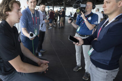 Etter 5000-meteren var Ingebrigtsen lett i steget. Han tok seg svært god tid til å snakke med den norske pressen.