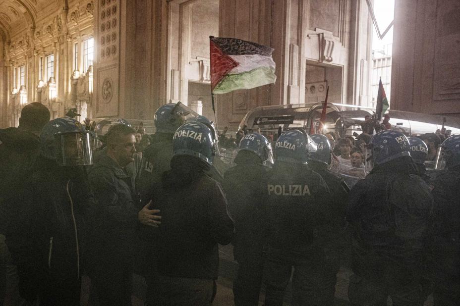Over 60 politifolk ble mandag skadet i Gaza-opptøyer i Milano. Foto: Marco Ottico / Lapresse / AP / NTB