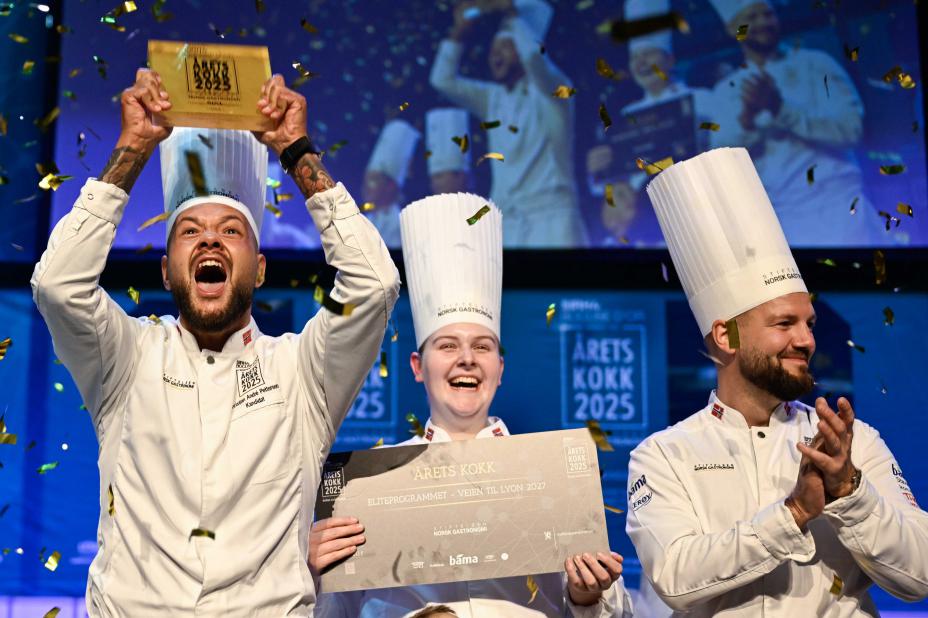 Kokkene Christian Andre Pettersen fra Bodø, Hanna Korvald fra Stavanger og Sebastian Gibrand fra Helsingborg i Sverige var teamet som vant Årets kokk 2025 på Stavanger konserthus.