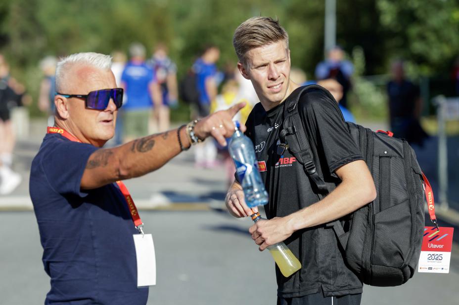 Per Svela gikk glipp av København halvmaraton etter at han ble bitt av en hund på løpetur. Her med trener Gjert Ingebrigsten under NM.