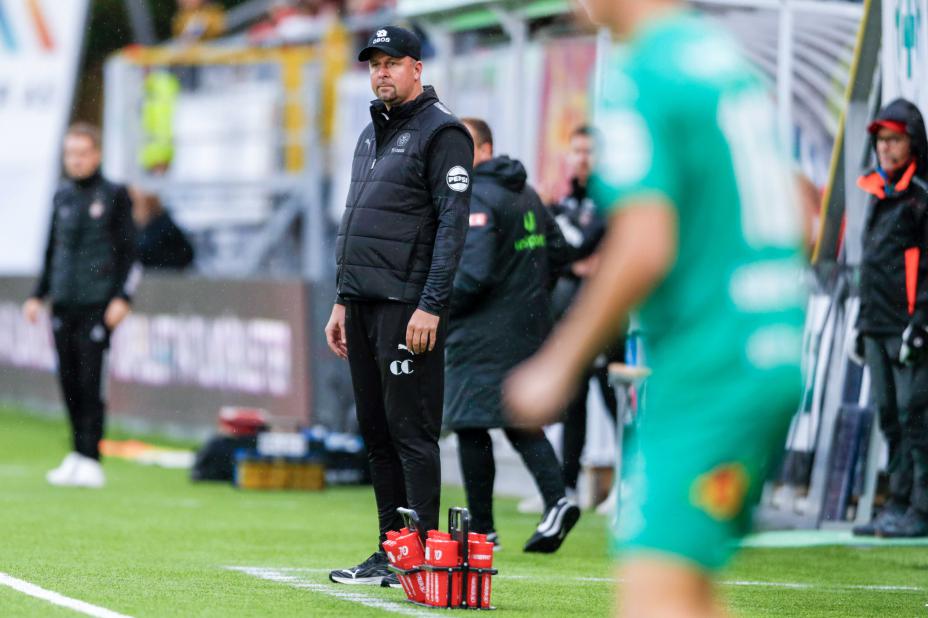 HamKam-trener Thomas Myhre fikk ikke ledet sine elever i cupkamp mot Levanger onsdag. Foto: Rune Stoltz Bertinussen / NTB