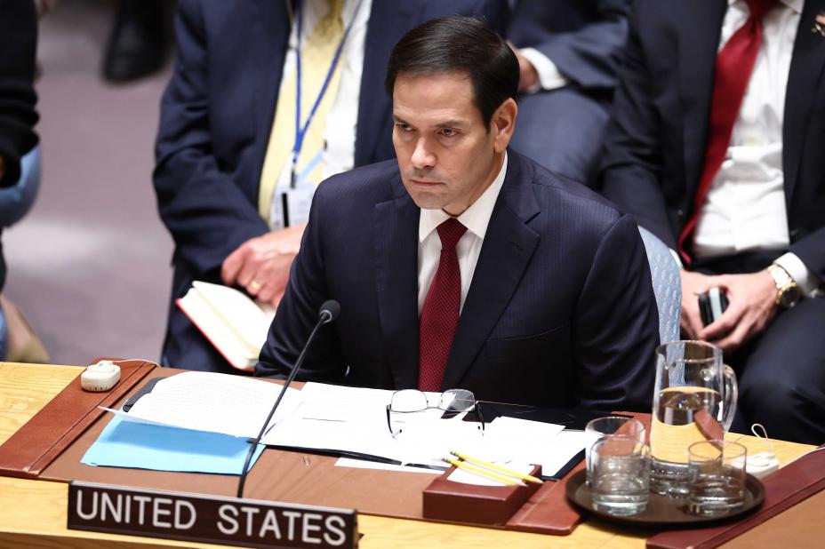 USAs utenriksminister Marco Rubio i FN-hovedkvarteret i New York. Han møtte onsdag Russlands utenriksminister. Foto: Charly Triballeau / AP / NTB