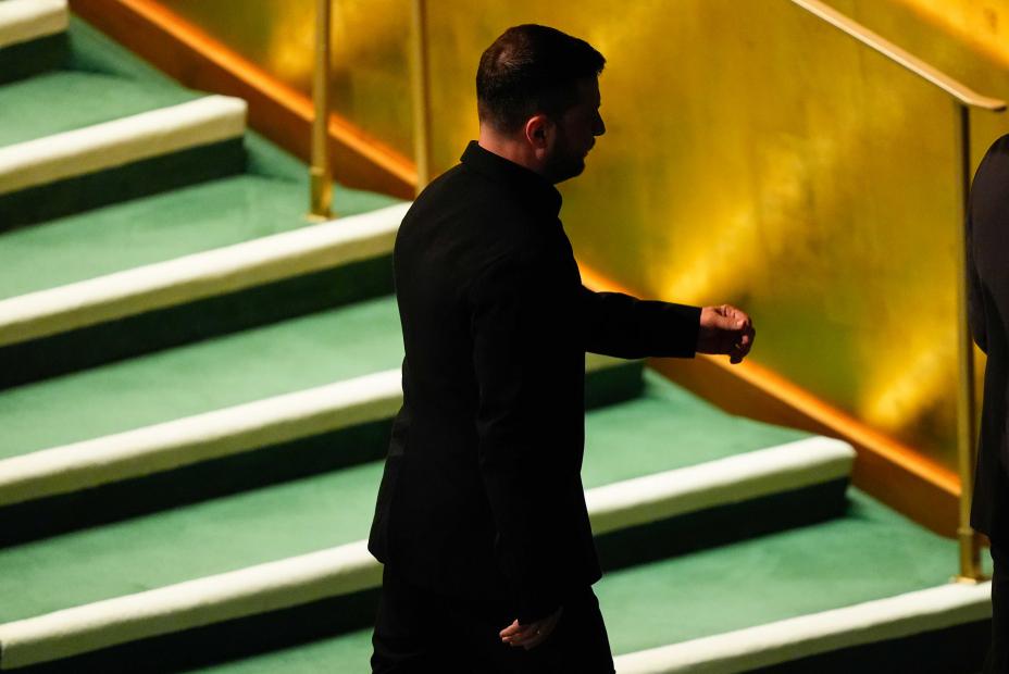 Ukrainas president Volodymyr Zelenskyj etter talen i FNs hovedforsamling onsdag. Foto: Yuki Iwamura / AP / NTB