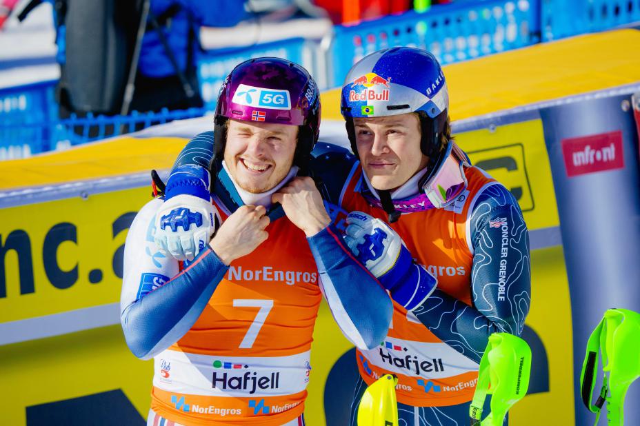 Kompisene Atle Lie McGrath og Lucas Pinheiro Braathen er blant profilene som ventes å sette farge på alpin-VM i Narvik i 2029. Foto: Stian Lysberg Solum / NTB