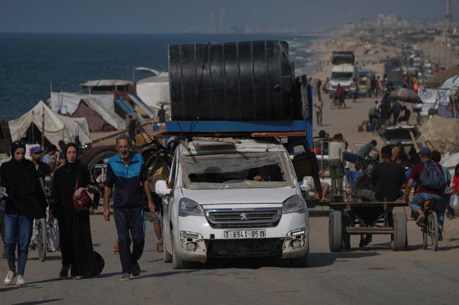 Fordrevne palestinere flykter fra Gaza by langs kystveien med sine gjenværende eiendeler. Foto: Abdel Kareem Hana / AP / NTB