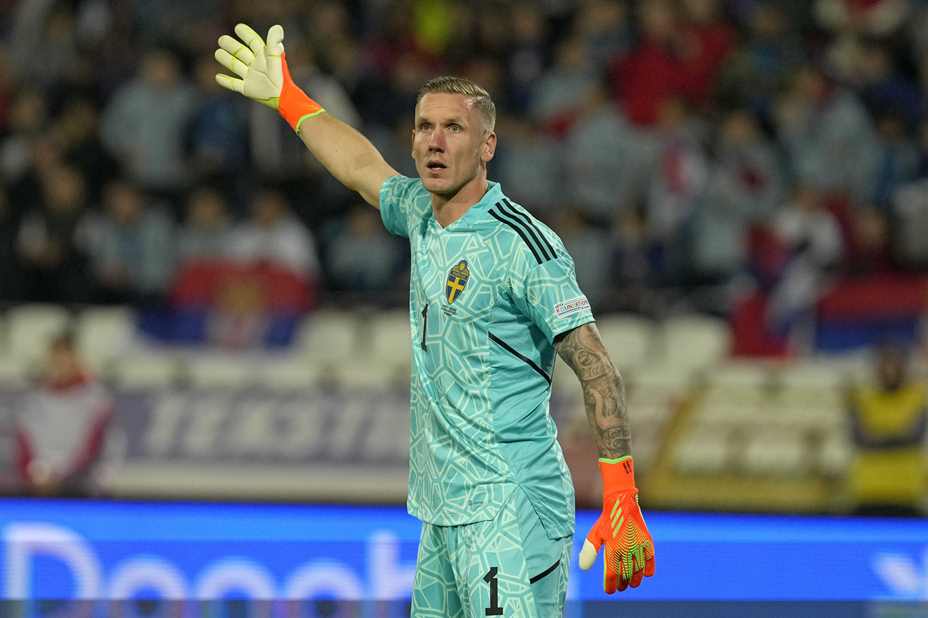 Robin Olsen gir seg på Sveriges landslag i fotball. Foto: Darko Vojinovic, AP / NTB