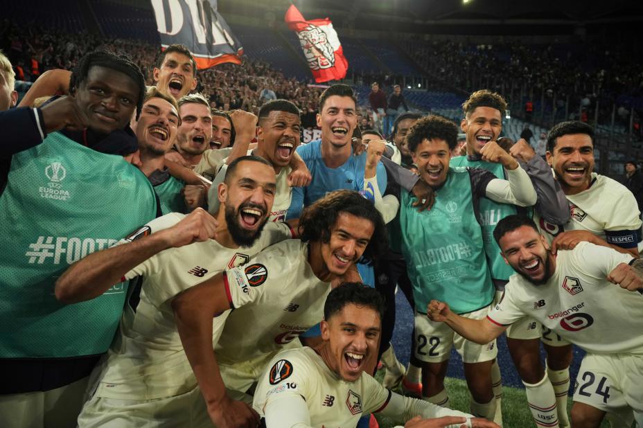 Osame Sahraoui og Lille kunne juble for en spesiell seier i europaligaen borte mot Roma. Keeper Berke Özer ble hovedpersonen. Foto: Andrew Medichini / AP / NTB