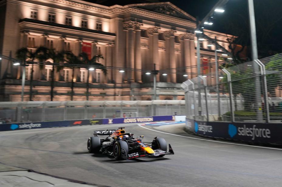 Max Verstappen var tredje raskest i fredagens trening foran Singapores Grand Prix i Formel 1. Foto: Vincent Thian, AP / NTB