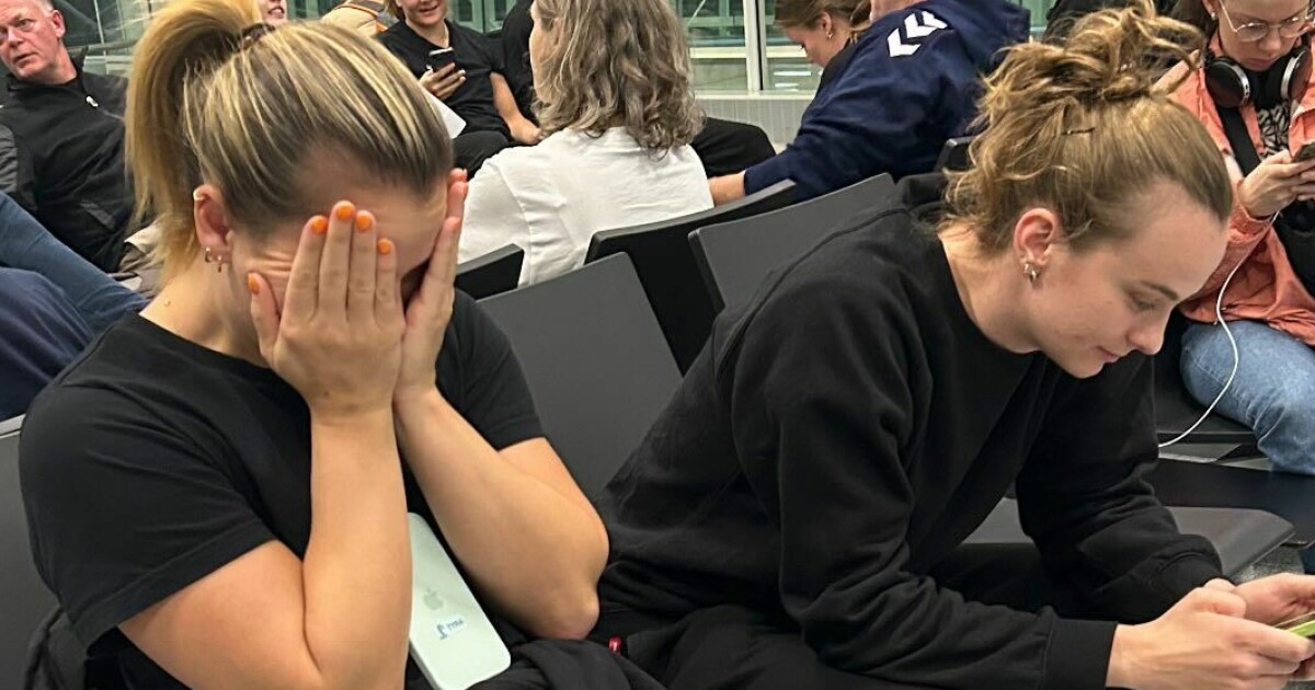 Etter et par timer på gulvet kom det danske laget omsider seg på et fly til Ungarn og til hallen.