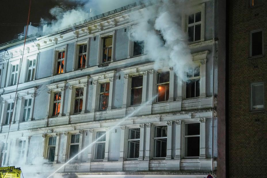 Det brant kraftig i en bygård ved Alexander Kiellands plass i Oslo sentrum i januar i år. Nå er saken henlagt. Foto: Beate Oma Dahle / NTB