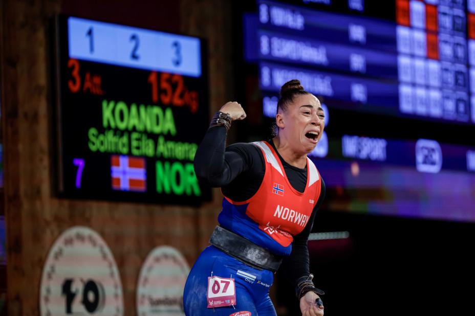 Koanda vant i fjor OL-gull i 81-kilosklassen da hun i Paris-lekene løftet 275 kilo fordelt på 121 i rykk og 154 i støt. På Idrettsgallaen ble hun kåret til årets kvinnelige utøver.