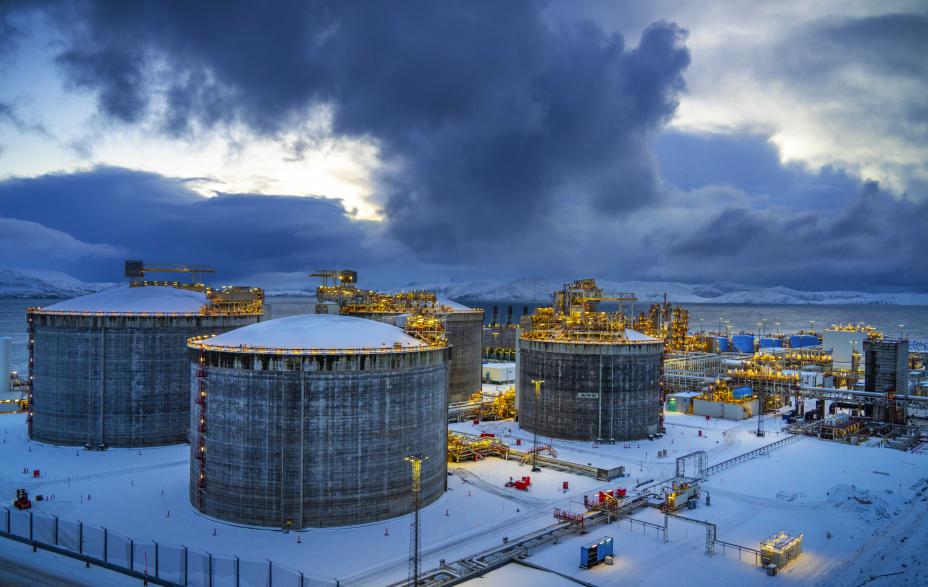 Bildet viser Equinors anlegg på Melkøya utenfor Hammerfest og ble tatt da statsminister Jonas Gahr Støre besøkte anlegget i januar 2023. Foto: Ole Berg-Rusten / NTB