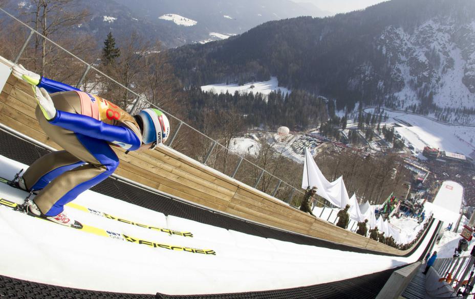 Johann Forfang i ovarennet i skiflygingsbakken i Planica fra et verdenscuprenn i 2016. Foto: Primoz Lovric / NTB