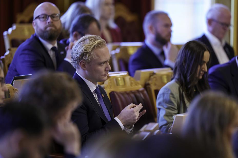Fremskrittspartiets Simen Velle bekrefter at Frp støtter et forslag som vil tvinge regjeringen til å dekke reelle pensjonskostnader i private barnehager. Foto: Cornelius Poppe / NTB
