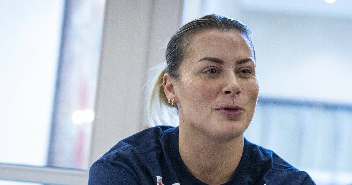 Nora Mørk (34) smiler stort. 14 måneder har gått siden hun var samlet med landslaget sist. Nærmere bestemt: OL-finalen i Paris i fjor sommer.