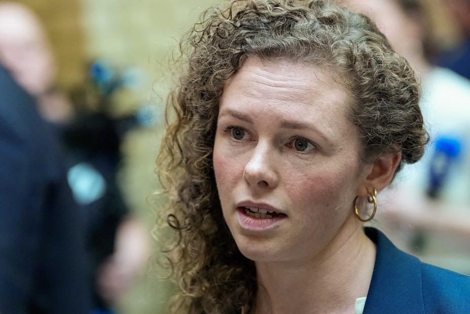 Ingrid Liland (MDG) i vandrehallen etter finanstalen i Stortinget. Foto: Lise Åserud / NTB