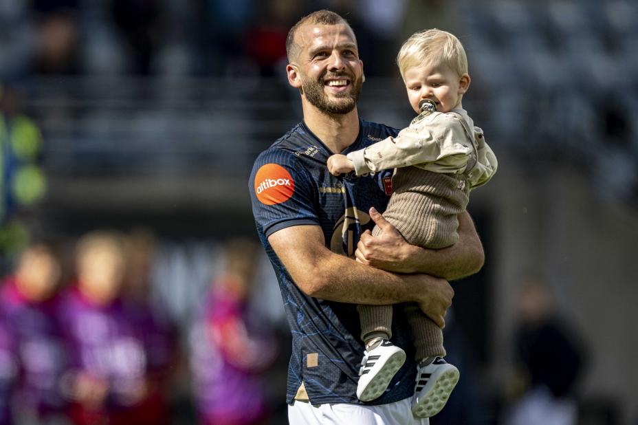 Vikings Zlatko Tripic sammen med sønnen Luka etter en kamp mot Rosenborg i fjor. Nå venter han og kona på barn nummer to.