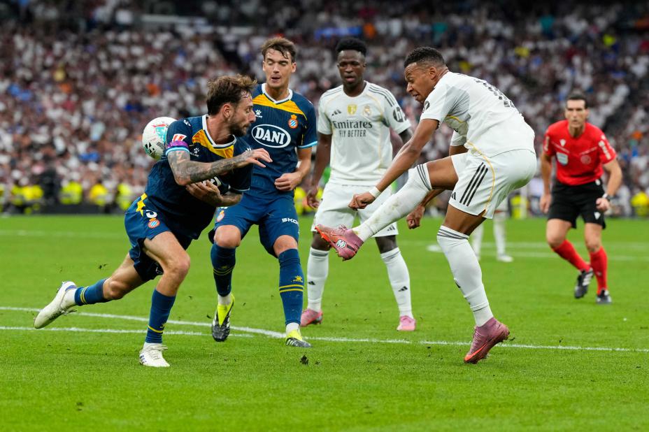 Kylian Mbappé avgjorde da Real Madrid slo Getafe 1-0 og inntok tabelltoppen. Her fra en tidligere kamp. Foto: Manu Fernandez, AP / NTB