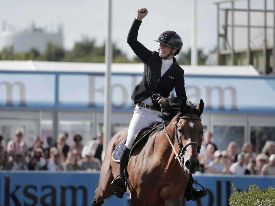 Sanna Thijssen vant verdenscupåpningen i Oslo Horse Show, der det var historisk sterk norsk innsats. Her fra en tidligere konkurranse. Foto: Daniel Nilsson, TT via AP / NTB