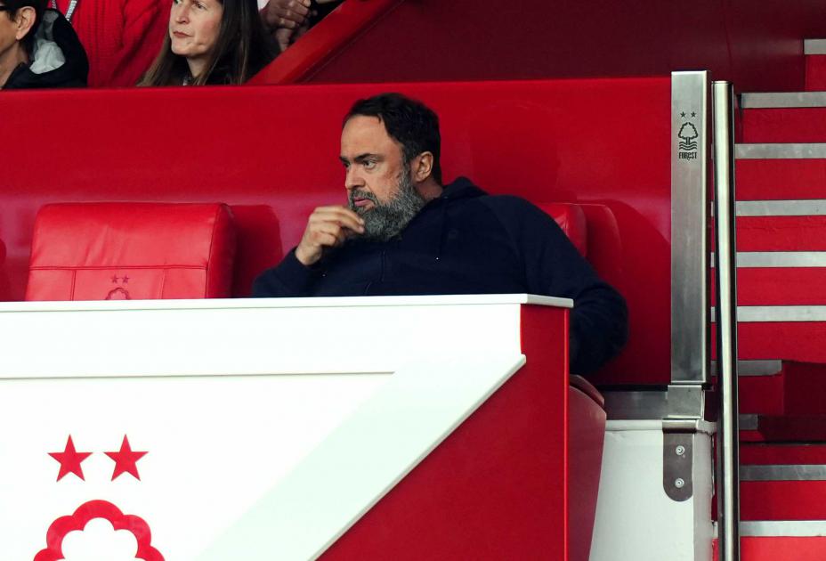 Nottingham Forest-eier Evangelos Marinakis like før han forlot sitt sete på stadion og sparket Ange Postecoglou. Foto: Mike Egerton / PA via AP / NTB