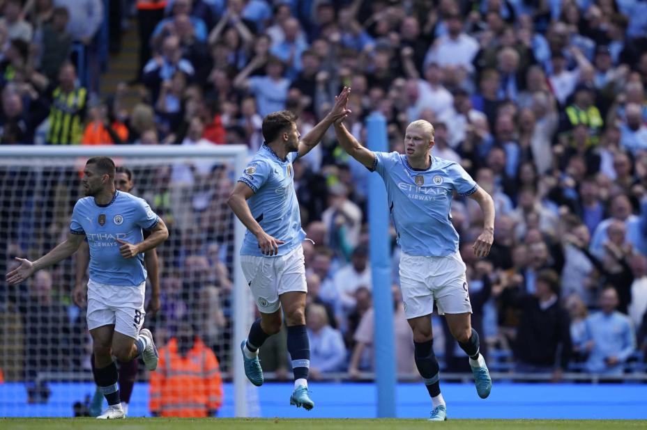 Ruben Dias er full av lovord om Erling Braut Haaland. Foto: Dave Thompson / AP / NTB