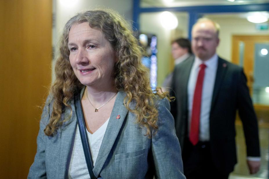 Aps finanspolitiske talsperson Tuva Moflag (Ap) var ordknapp før Arbeiderpartiets gruppemøte tirsdag ettermiddag.