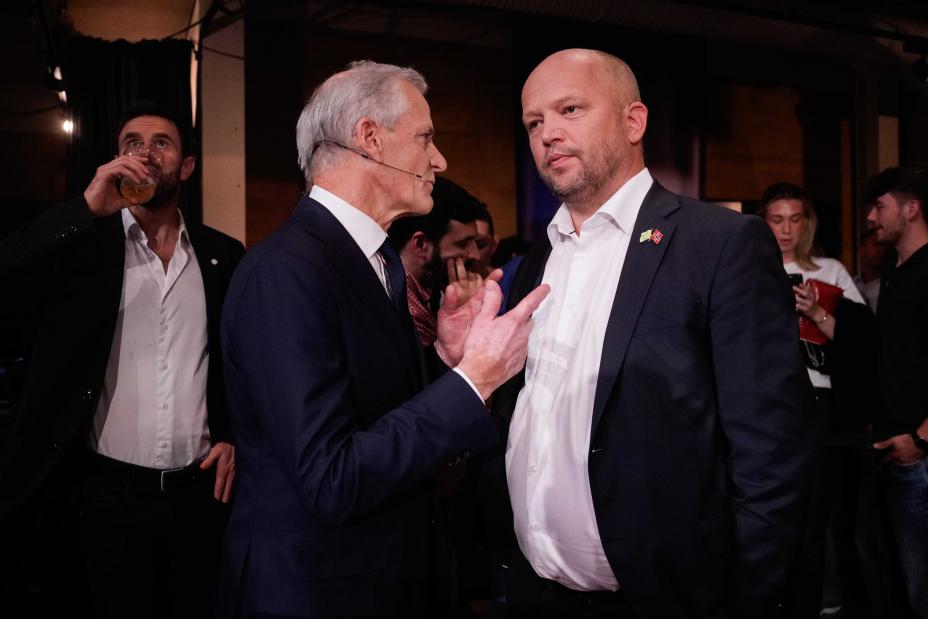 Leder i Arbeiderpartiet Jonas Gahr Støre og leder i Senterpartiet (Sp) Trygve Slagsvold Vedum hadde onsdag et møte etter budsjettbråket. Foto: Javad Parsa / NTB