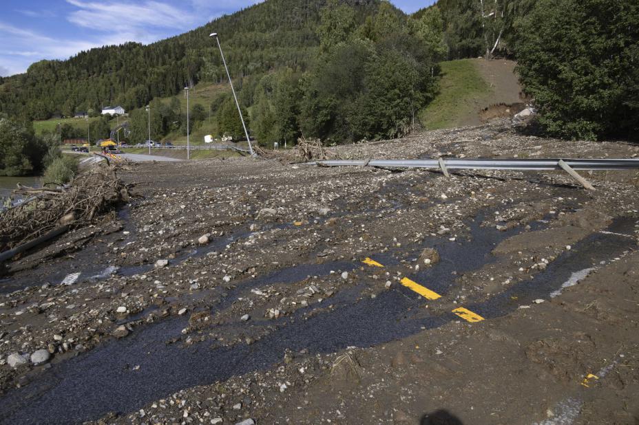 I september 2024 stengte et jordras E6 mellom Tretten og Fåvang ved Krekke i Ringebu kommune i Gudbrandsdalen. Foto: Geir Olsen / NTB