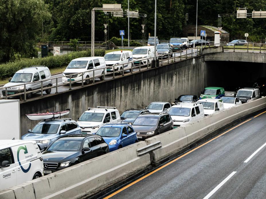 Det kan bli lange køer på E18 når ny anleggsarbeider starter opp denne helga. Illustrasjonsfoto: Annika Byrde / NTB
