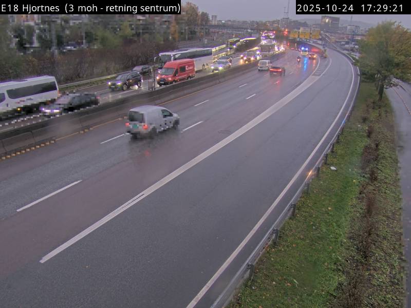 Webkamera fra Statens vegvesen viser køen på E18 i forbindelse med bilbrannen. Foto: Skjermdump fra Statens vegvesen / NTB