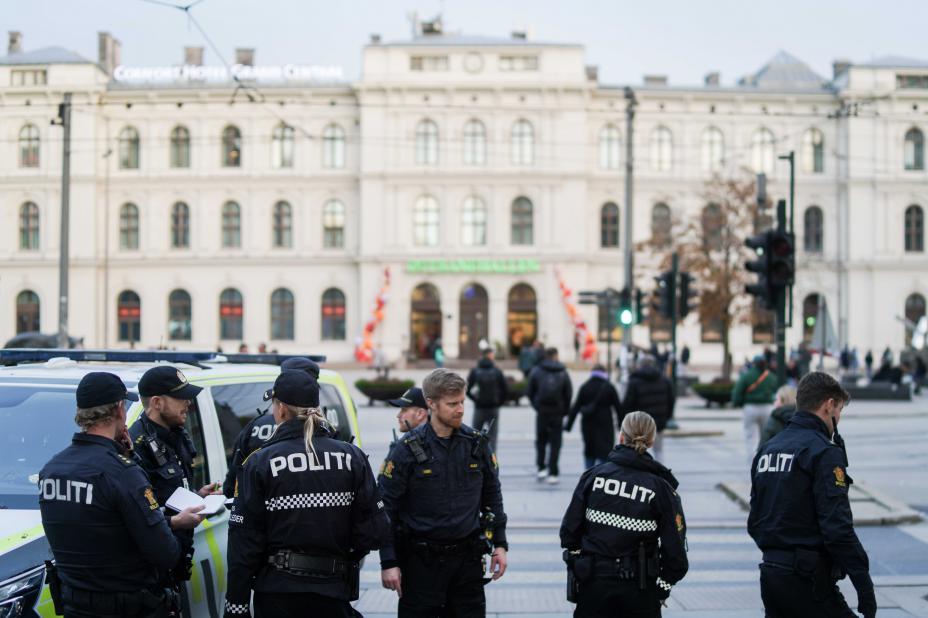 Politiet på Karl Johan der en mann i 30-årene ble utsatt for vold. Foto: Thomas Fure / NTB