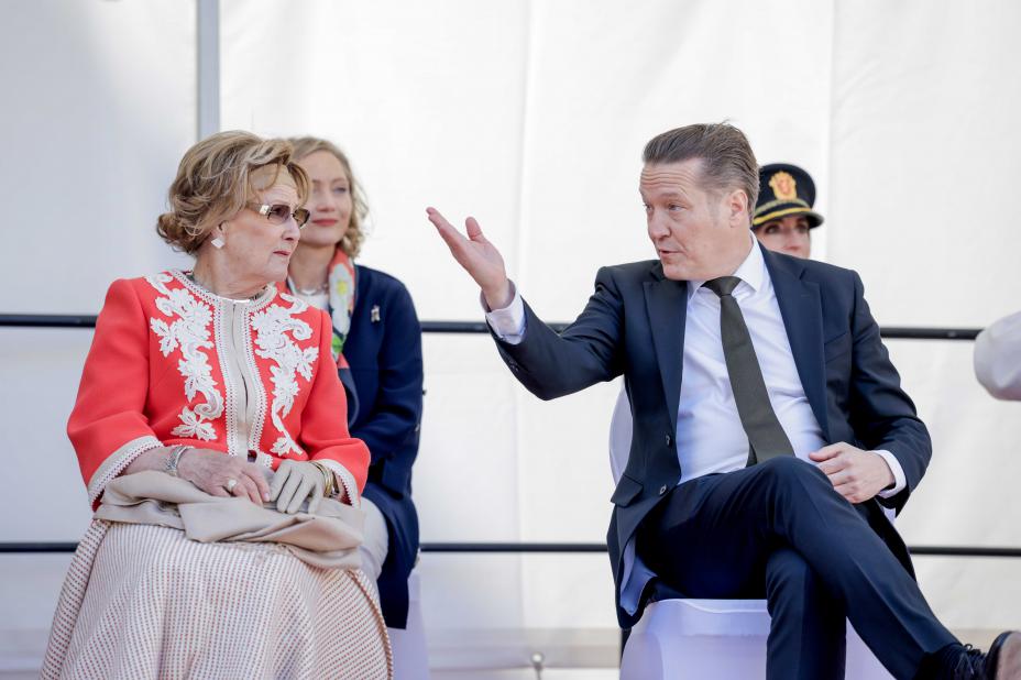 Festspilldirektør Lars Petter Hagen, her med dronning Sonja under årets Festspill-åpning i Bergen, fortsetter til 2030. Foto: Paul S. Amundsen / NTB