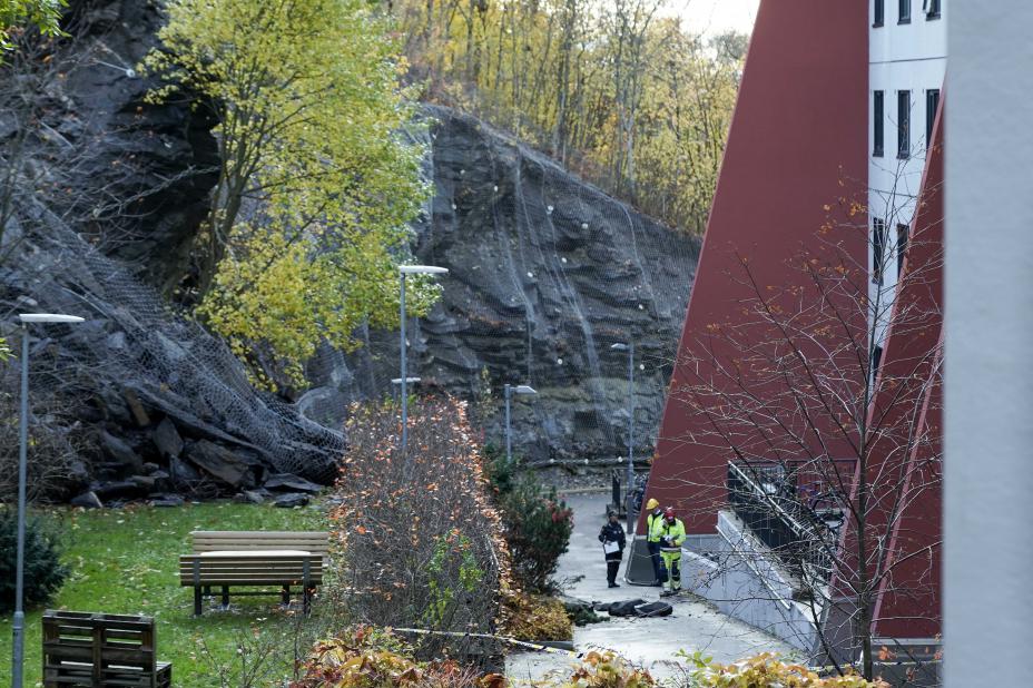 Søndag gikk det et steinras ved studentboliger på Carl Berner i Oslo. Foto: Jonas Fæste Laksekjøn / NTB