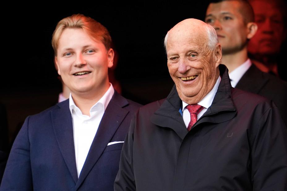 Kong Harald og prins Sverre Magnus under Norges kamp mot Italia i juni.