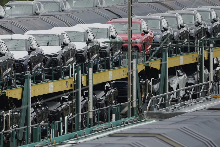 Nye Volkswagener og Audier på et godstog i München. Foto: Matthias Schrader / AP / NTB