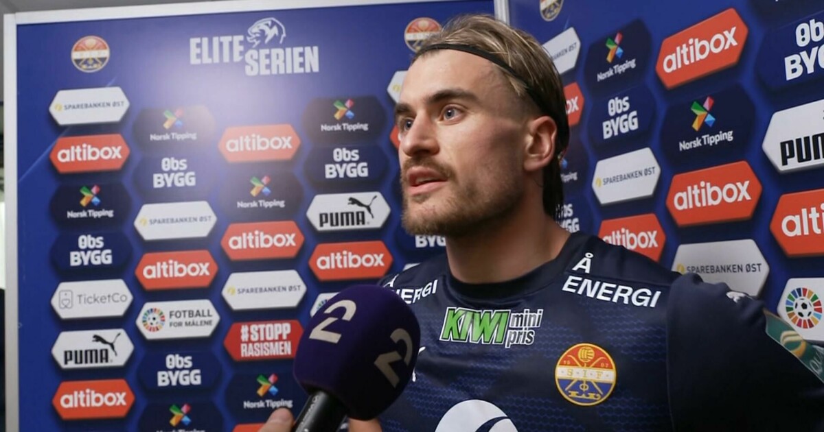 – Ved sidelinjen da jeg tok litt vann. Det skal vi ikke ha noe av på norske fotballbaner, sier han.