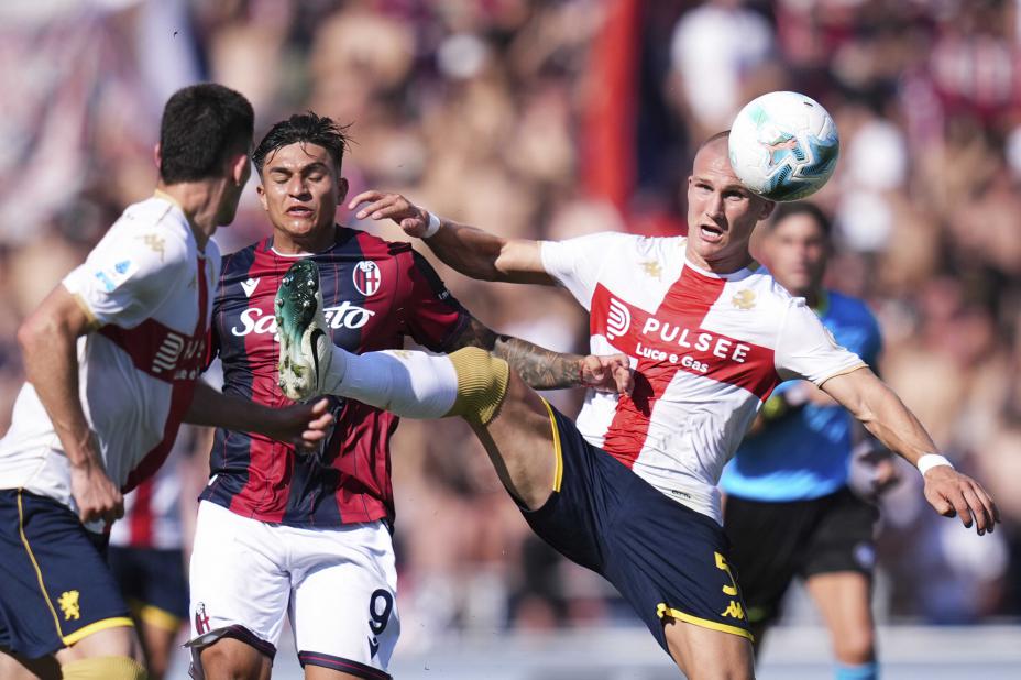 Leo Skiri Østigård ble matchvinner for Genoa mot Sassuolo. Bildet er fra en kamp mot Bologna i september. Foto: Massimo Paolone / LaPresse via AP / NTB