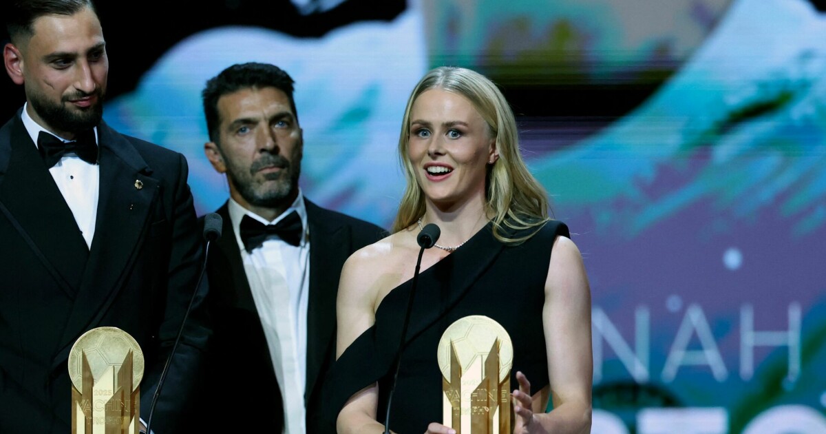 BALLON D'OR: Mary Earps delte ut Yashin-prisen sammen med Gianluigi Buffon i september i år. Foto: Adam Davy / Pa Photos / NTB