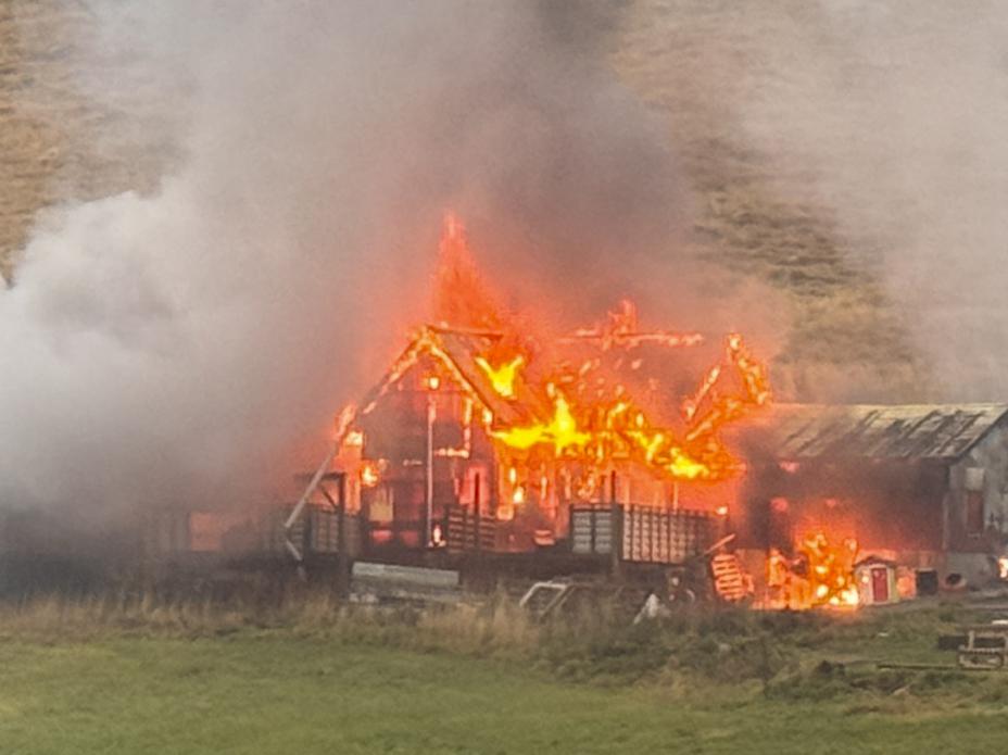 Et fjøs i Vestvågøy kommune i Nordland står i full fyr. Det skal ha vært dyr i bygningen da brannen startet, men alle ble evakuert raskt, ifølge Lofot-Tidende.