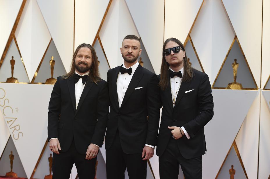 LA-livet blir for slitsomt: Max Martin, her til venstre med Justin Timberlake som var Oscar-nominert for «Can’t Stop the Feeling», og Schellback på Oscar-prisutdeling i 2017. Foto: Jordan Strauss / Invision / AP / NTB