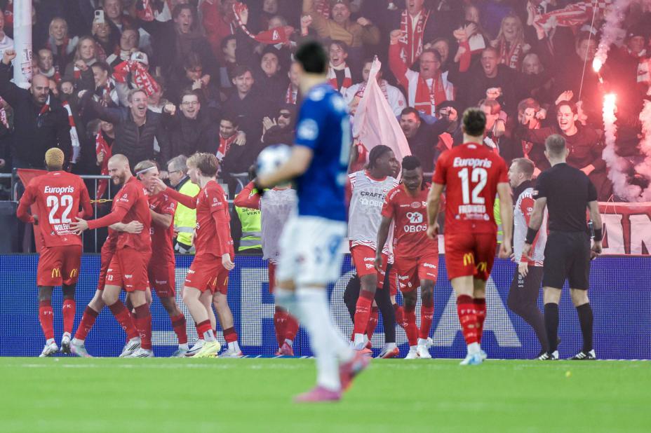 Fredrikstad-spillerne jubler. Foto: Christoffer Andersen / NTB