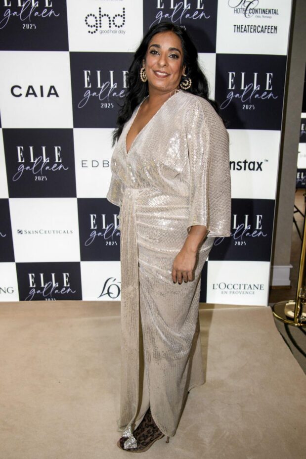 Lubna Boby Jaffery – her på rød løper før Elle-gallaen 2025 på Theatercaféen – er ute av Maskorama.