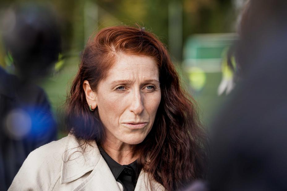 Fotballpresident Lise Klaveness fra seansen da regjeringens handlingsplan for utfasing av gummigranulat ble presentert i oktober.