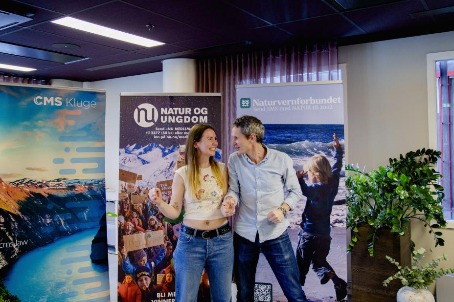 Leder i Natur og Ungdom, Sigrid Hoddevig Losnegård, og leder i Naturvernforbundet, Truls Gulowsen etter at Efta-domstolen i vår ga miljøorganisasjonene medhold i Førdefjorden-søksmålet. I dag kommer dommen i saken om midlertidig stans i utslippene, mens man venter på dommen fra Høyesterett.
